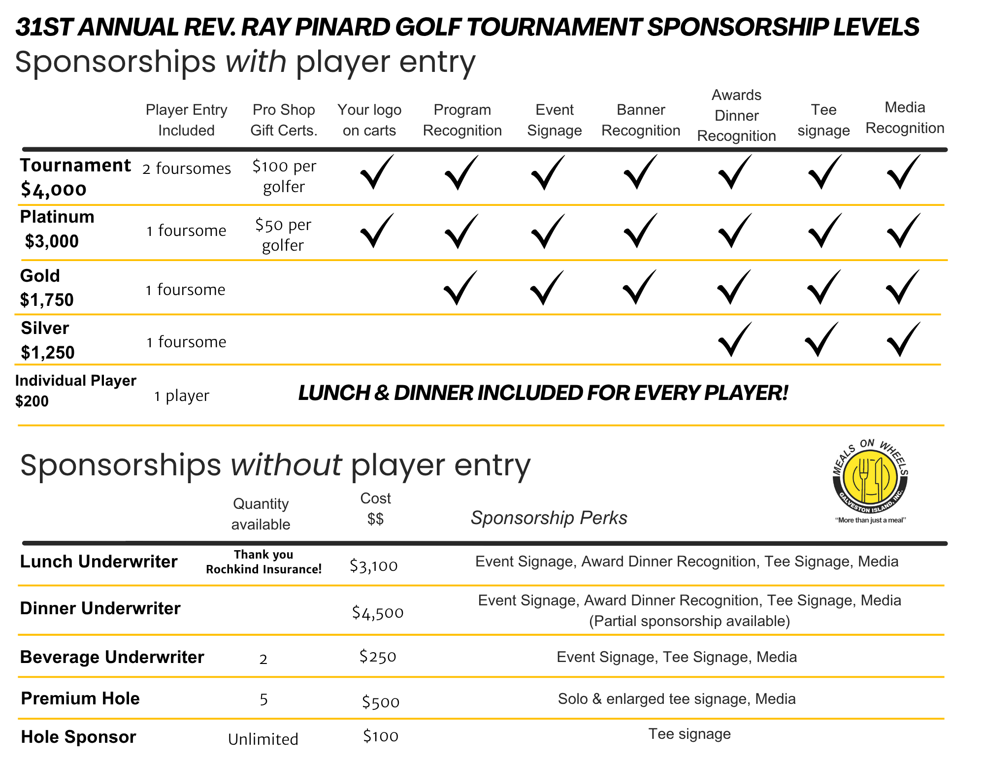 Lunch & Dinner included for all players!